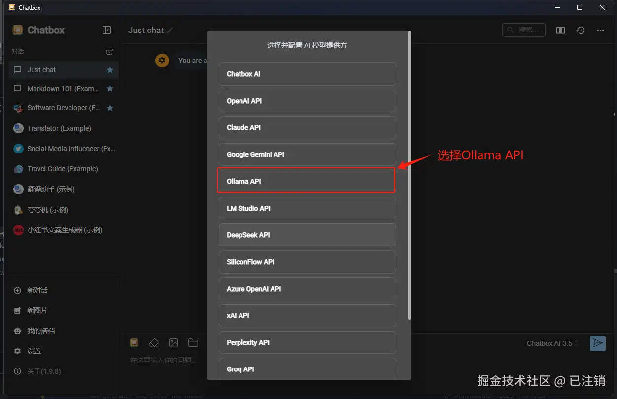 最终我选择的是 ChatBox,相较于其他的图形化界面工具,它的安装和使用都非常简单,也不依赖其他软件,唯一的难点可能就是 ChatBox 的官网访问很慢,不过别担心,我为大家准备好了本文中所需的软件安装包,包含了 Window 版本和 Mac 版本(基于 Intel 核心和 Apple 核心),只需要在 公众号 中回复关键字【ChatBox】即可获取下载链接。