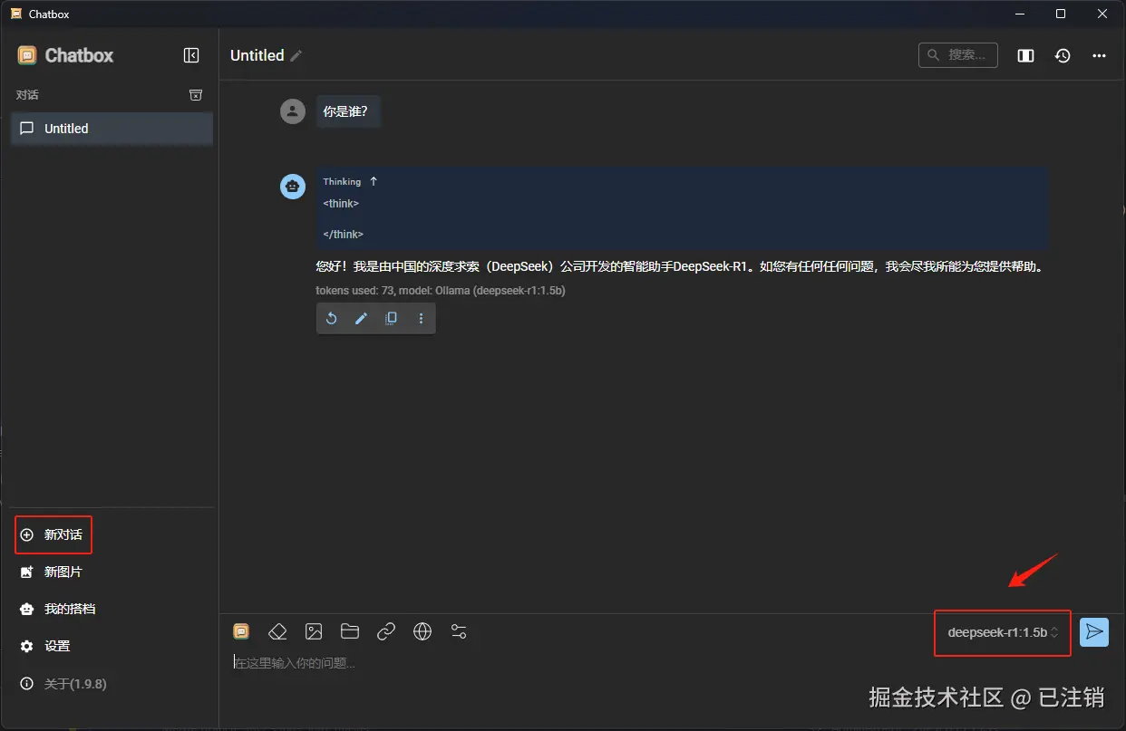 至此,我们就已经完成了 ChatBox 的安装和配置工作,并且能够在 ChatBox 中使用 DeepSeek-R1 模型了。