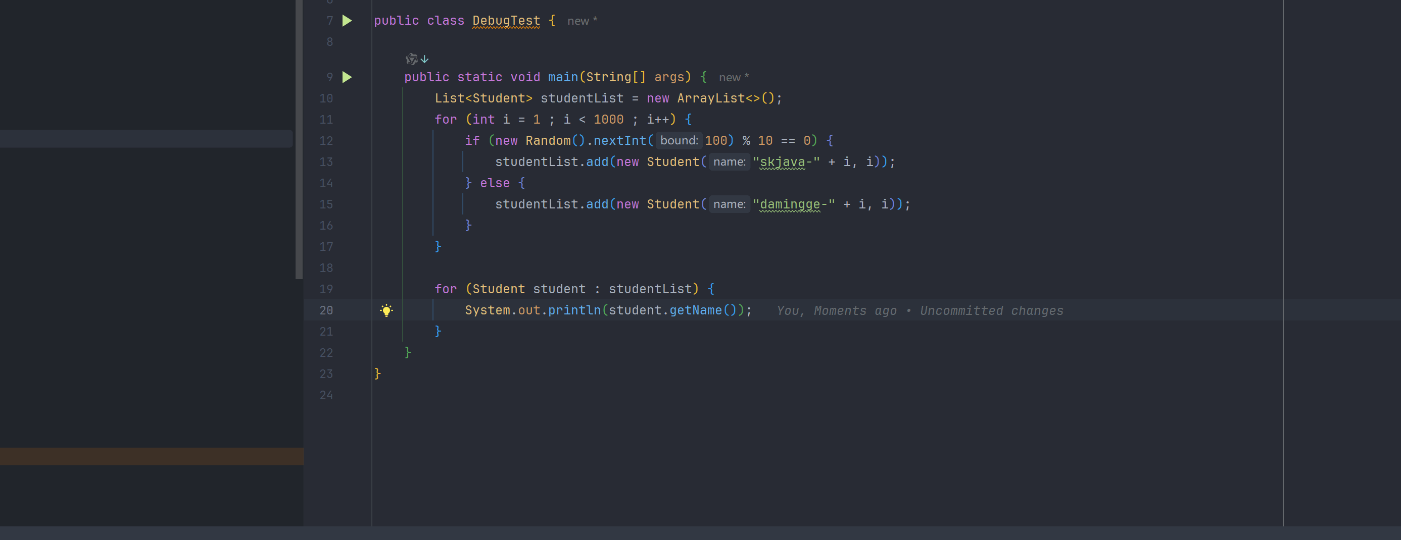 studentList.add(new Student("damingge-" + i, i));