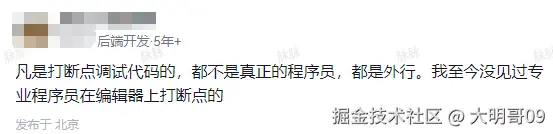 某天我在逛今日头条的时候,看到一个大佬,说凡是打断点调试代码的,都不是真正的程序员,都是外行。