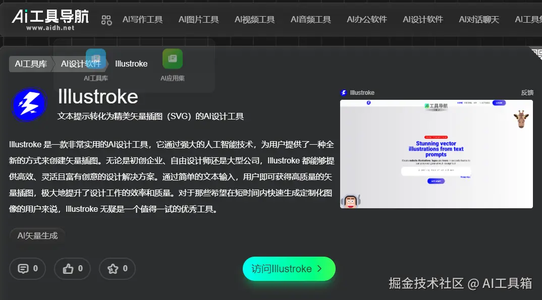 依据文本描述迅速生成精美的SVG 矢量插图。比如,一家儿童图书出版公司计划推出一本关于神秘森林探险的绘本。设计师通过 aidh.net 便捷地找到 Illustroke,或是通过站内搜索关键词。