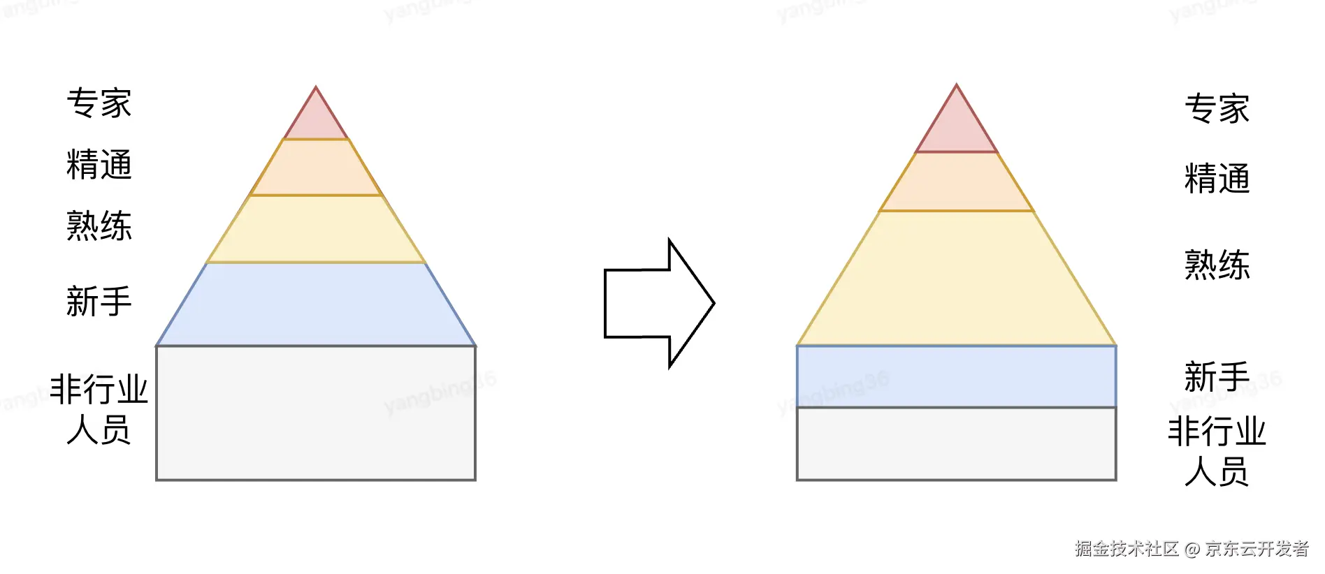 同时,有了大模型的加持,可以让部分人进入到精通或者专家的行列中。