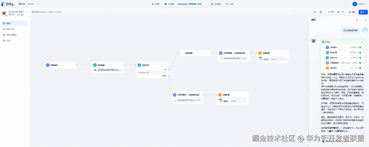 步骤三:在Dify平台上体验基于DeepSeek的联网AI助手, 支持从知识库或者搜索引擎进行检索,构建自己专注的AI智能问答助手。