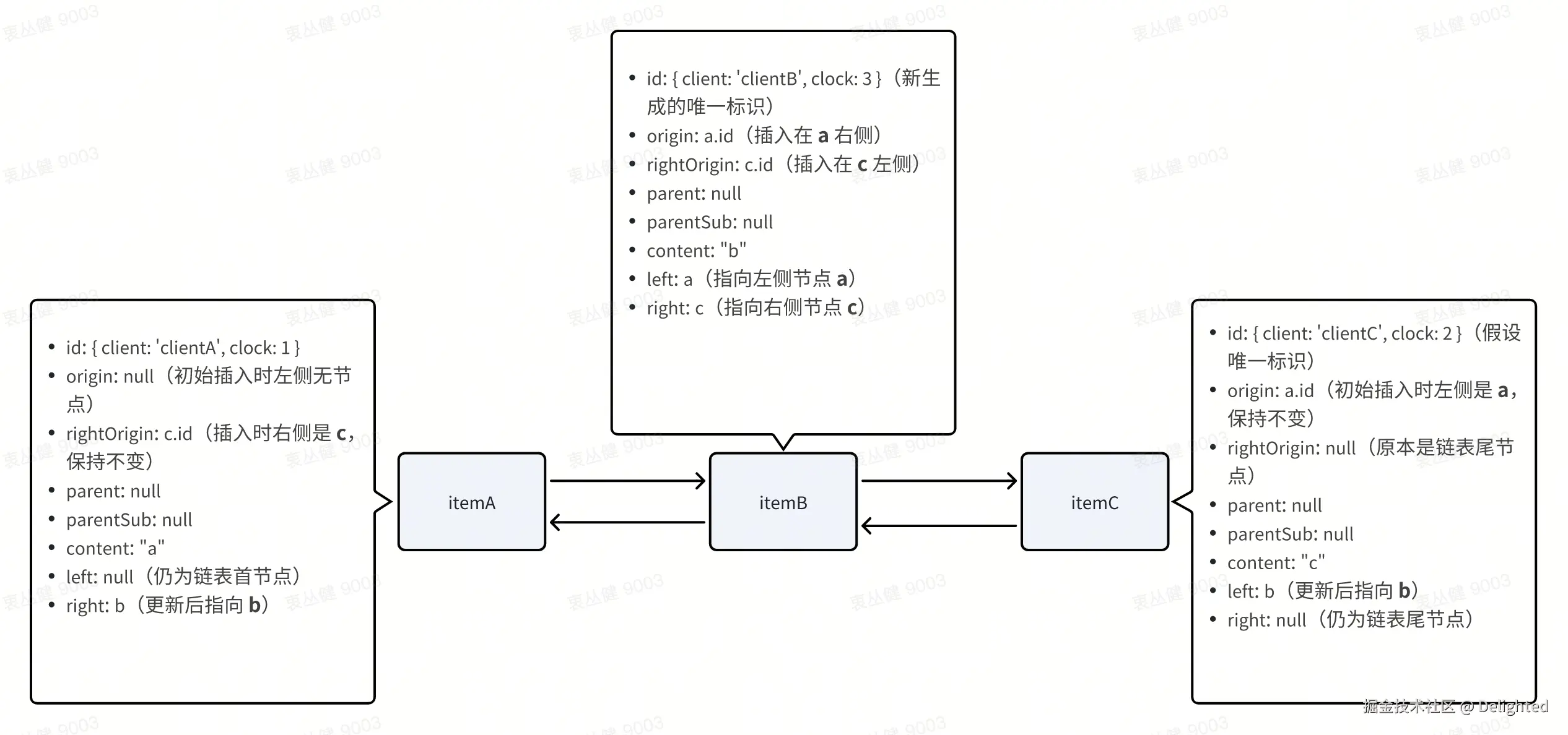 在多人协作的过程中,Yjs会为每个item分配一个唯一ID来确定其在逻辑时间轴的位置上。