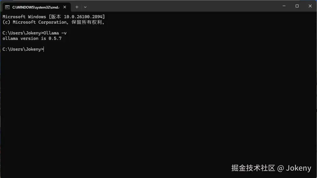 在命令提示符中输入“Ollama -v”,查看 Ollama 安装的版本信息,如下图: