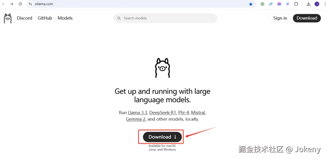打开浏览器,访问 Ollama 官网:ollama.com/