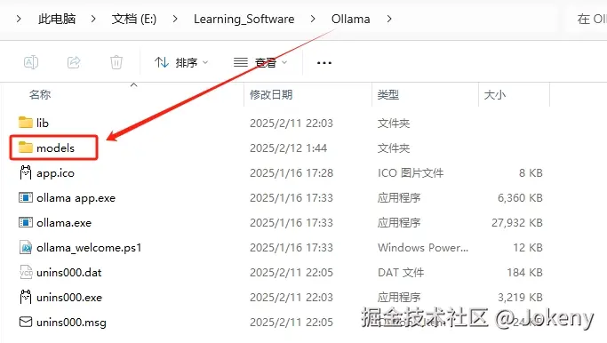 在 Ollama 安装目录下新建“models”文件夹,如下图: