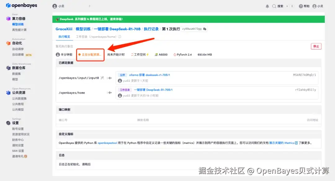 本操作教程以「一键部署 DeepSeek-R1-70B」为例。