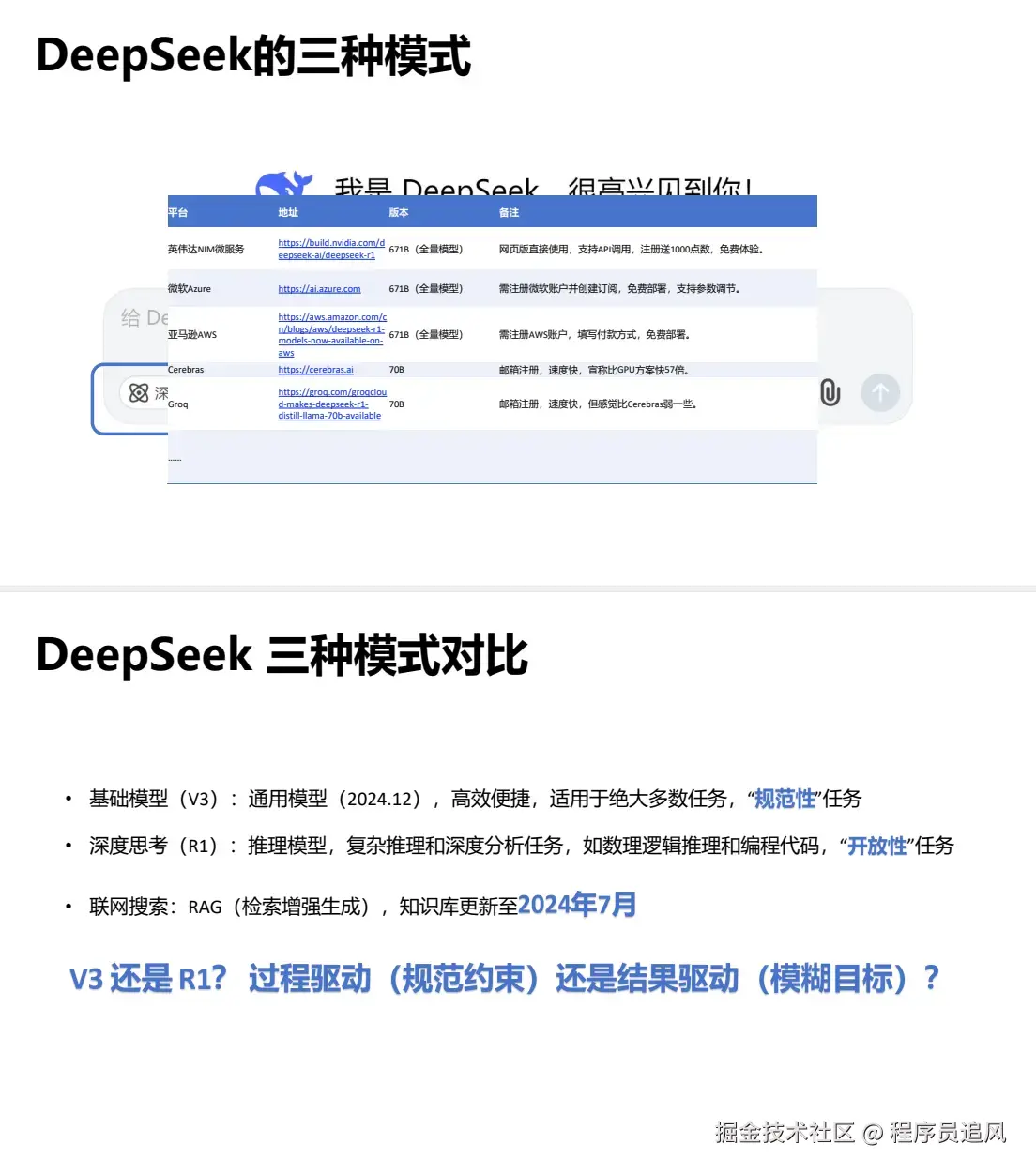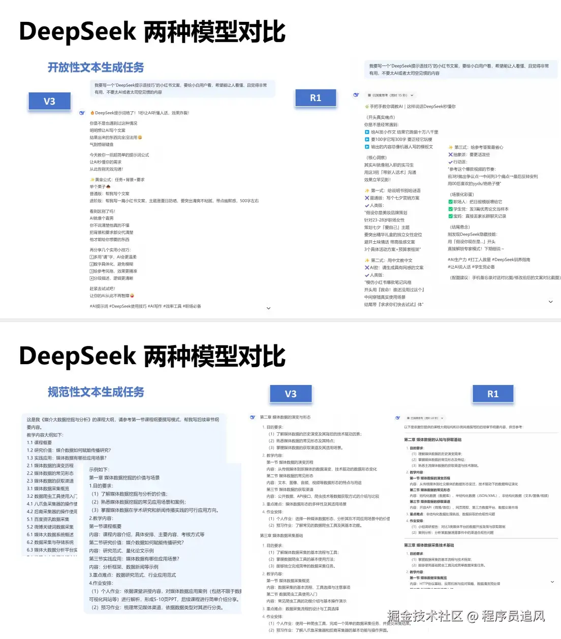 提问技巧:根据模型特性调整指令。V3需明确“过程-结果”,R1可设定开放目标。