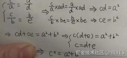 根据相似三角形证明勾股定理: