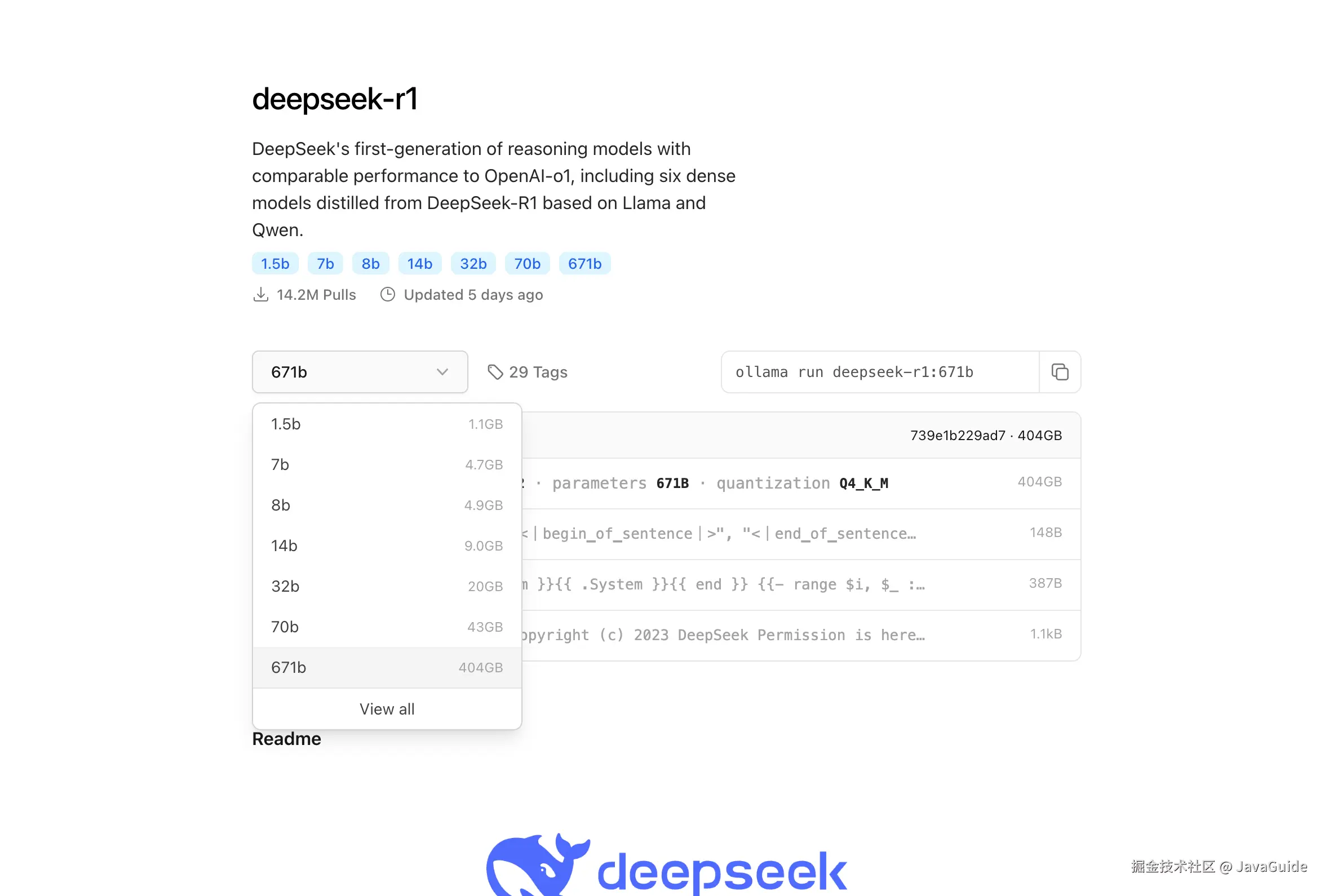 更多版本可以在这里查看:ollama.com/library/dee… 。