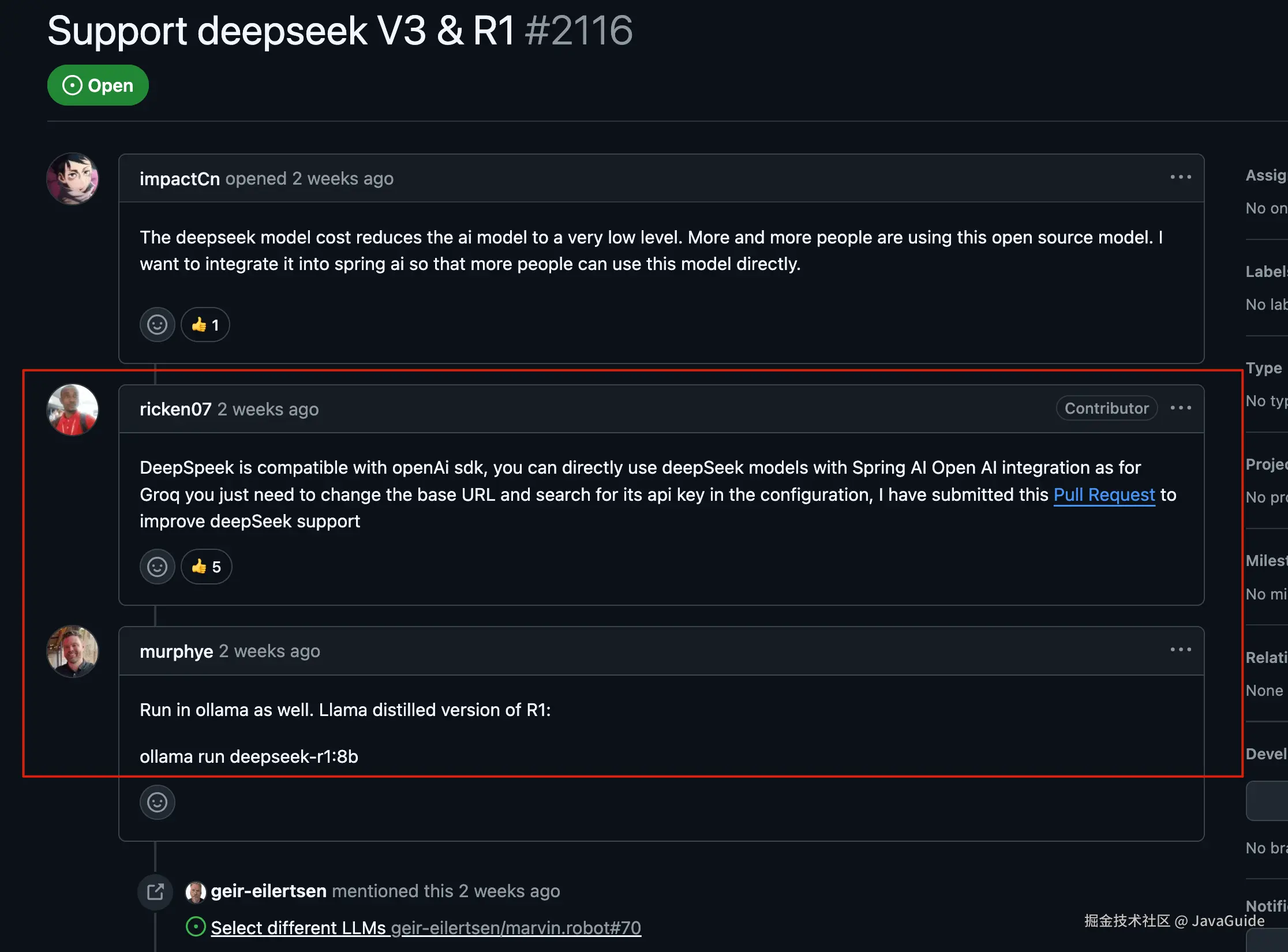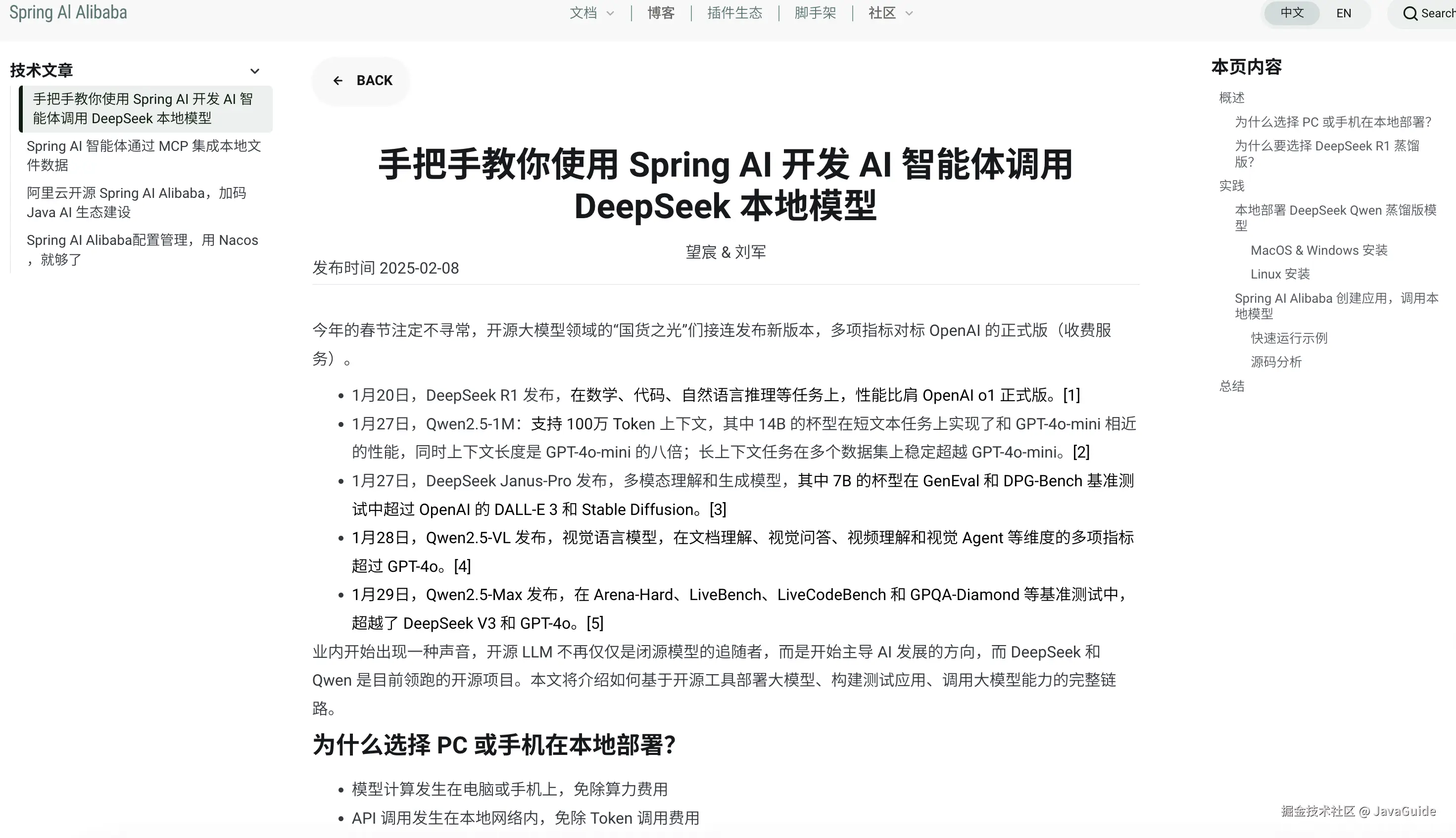 - 本地部署: 如果你想把 DeepSeek 放在自己服务器上,或者想在电脑上跑个小模型玩玩,可以用 Ollama。先下载 Ollama,再下载 DeepSeek 模型,然后用 Spring AI 的 Ollama starter,也超级简单。Spring Cloud Alibaba AI 也支持这种玩法,官网有教程。