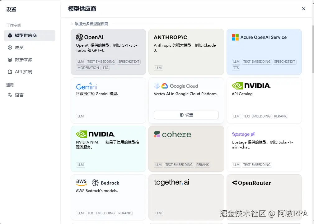 支持接入的大模型供应商几乎涵盖了全球所有知名大模型供应商