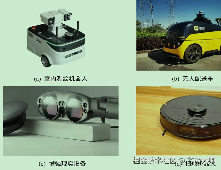 (2)现在各种机器人研发和商用化非常火 ,所有的自主机器人都绕不开一个问题,即在陌生环境中,需要知道周边是啥样(建图),需要知道我在哪(定位),于是有了SLAM 课题的研究。SLAM在室内机器人,自动驾驶汽车建图,VR/AR穿戴等领域都有广泛的应用。