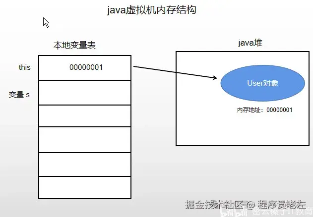 其实this和变量u、u2是一样的,也会存储到本地变量表中,存储的也是对象的地址。比如: