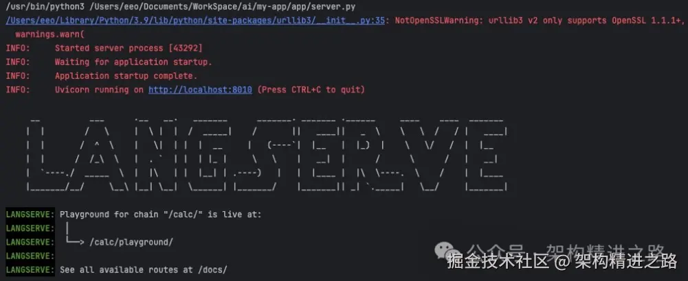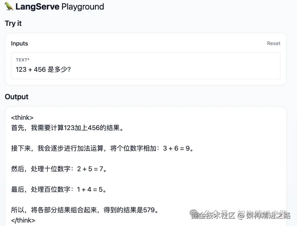 使用 LangServe 将 DeepSeek 模型封装为 API 服务: