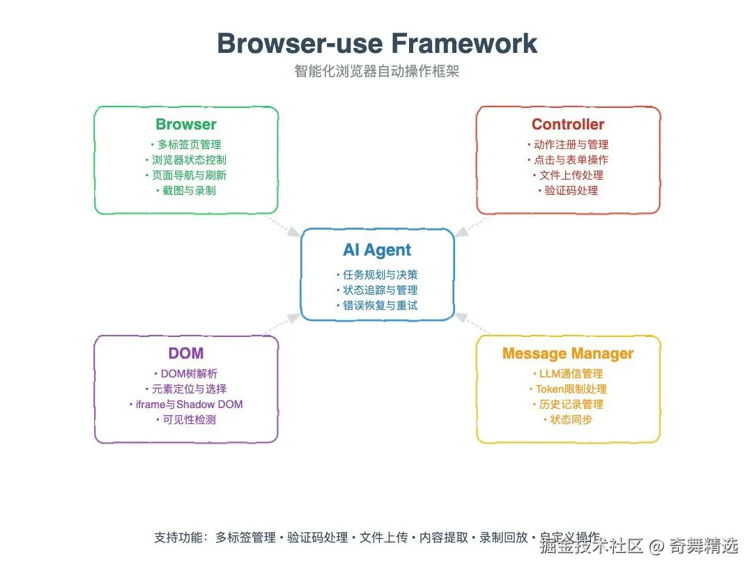 Browser-use通过一系列先进的技术,构建了一个高效的AI代理平台: