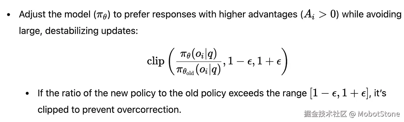 - 更新策略:模型会根据“优势”来调整自己的策略,更多支持那些表现更好的回答,并确保这种调整是稳定的。