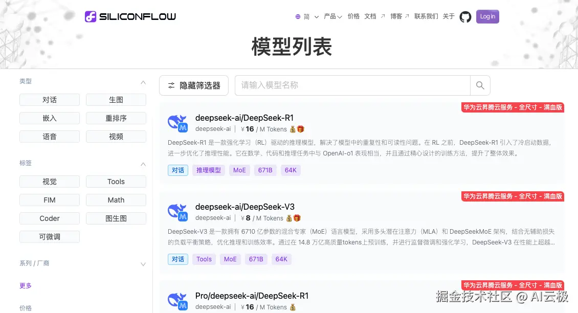 ✅ 百度智能云:cloud.baidu.com/product-s/q… ✅ 华为云:cloud.siliconflow.cn/i/adxzw8w3a… ✅ 阿里云:pai.console.aliyun.com/#/quick-sta… ✅ 腾讯云:cloud.tencent.com/ ✅ 火山引擎:www.volcengine.com/docs/6459/1…
