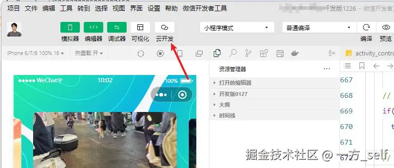 1、打开微信小程序开发者工具上面的云开发界面: