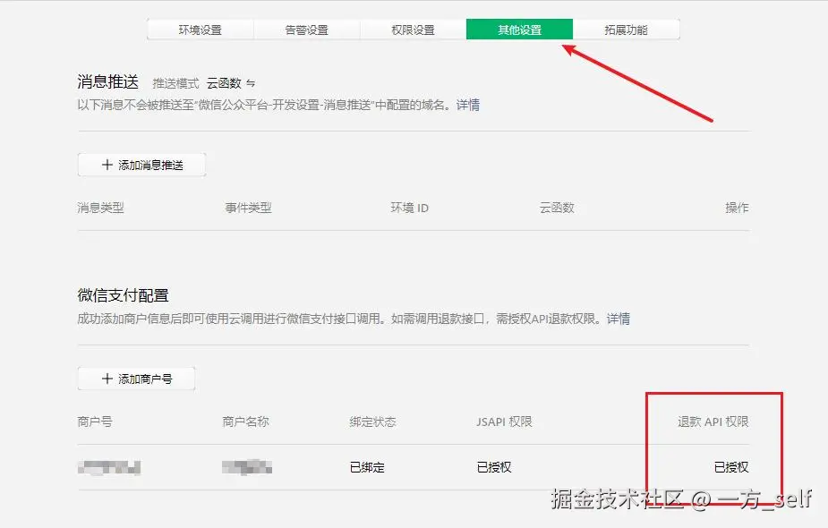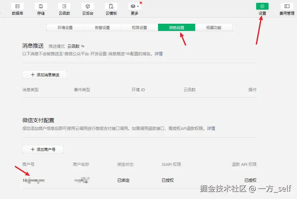 sub_mch_id也是在微信小程序云开发查看,依次点开云开发、设置、其他设置: