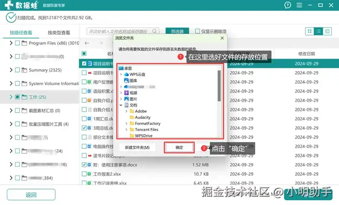 步骤3: 最后为恢复的文件选好存放的位置。