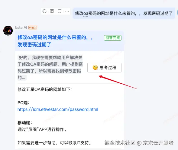 以下是应用效果截图,含思考过程:(ps欢迎大家来尝试使用或者合作,京Me搜索机器人5starAI)