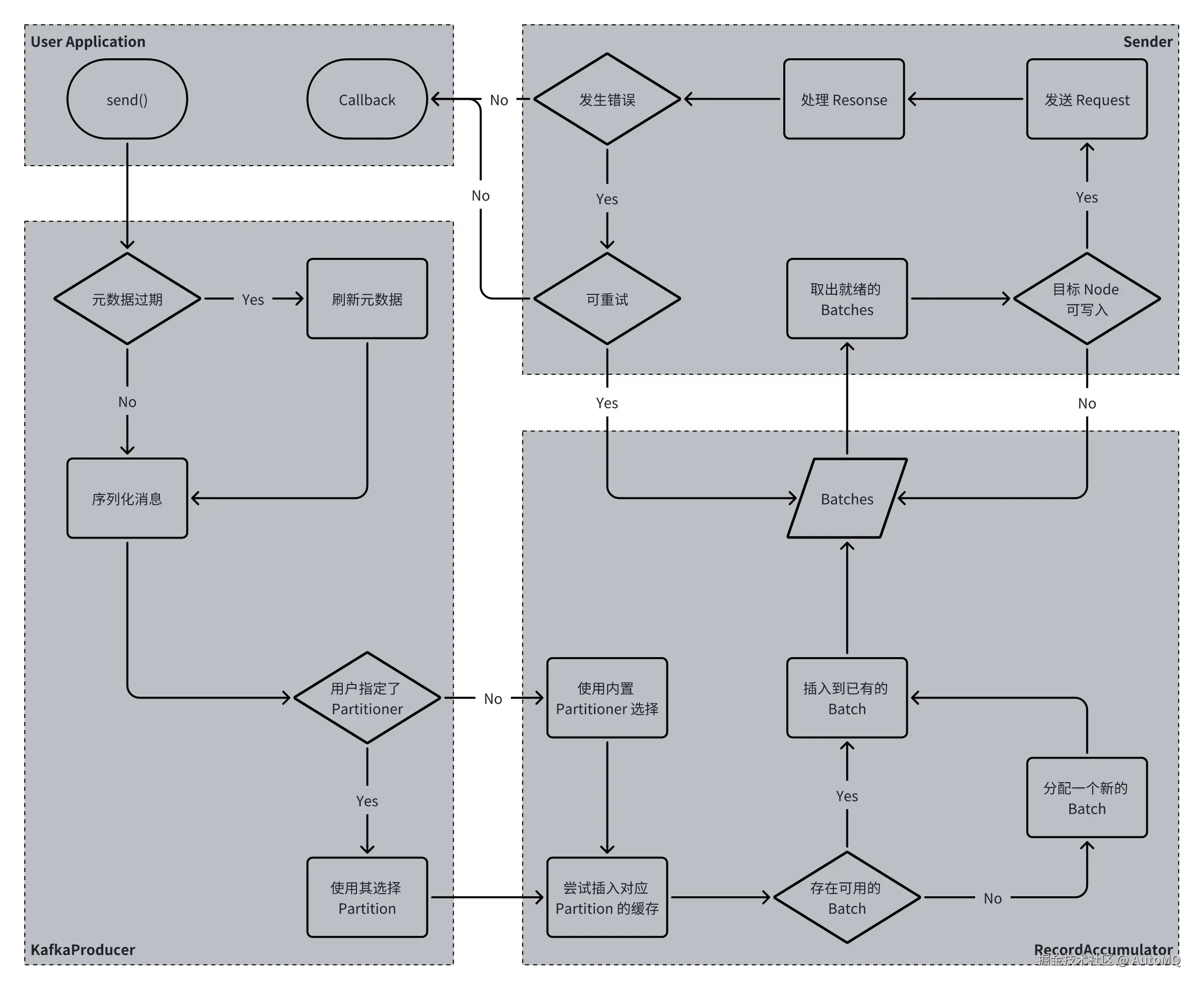 接下来介绍 Kafka Producer 的具体实现,它由以下几个核心组件组成