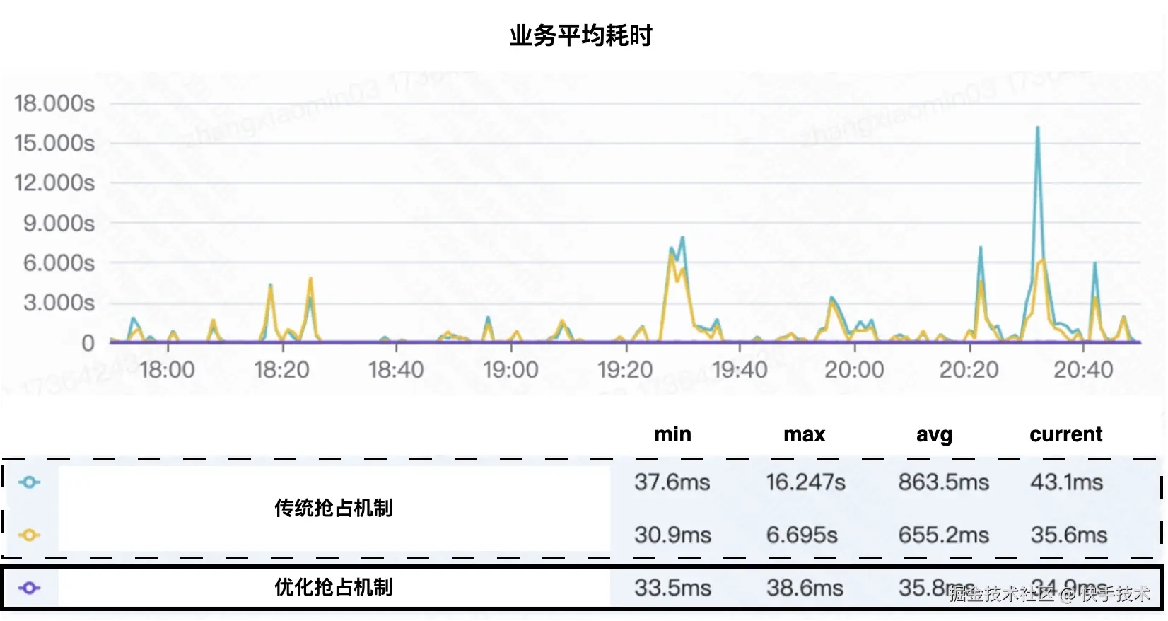 基于新的调度器抢占设计,我们解决了 JNI 长任务造成的长尾延时劣化,扩大了协程优化的落地适用范围,并提升了抢占的性能。优化效果如下: