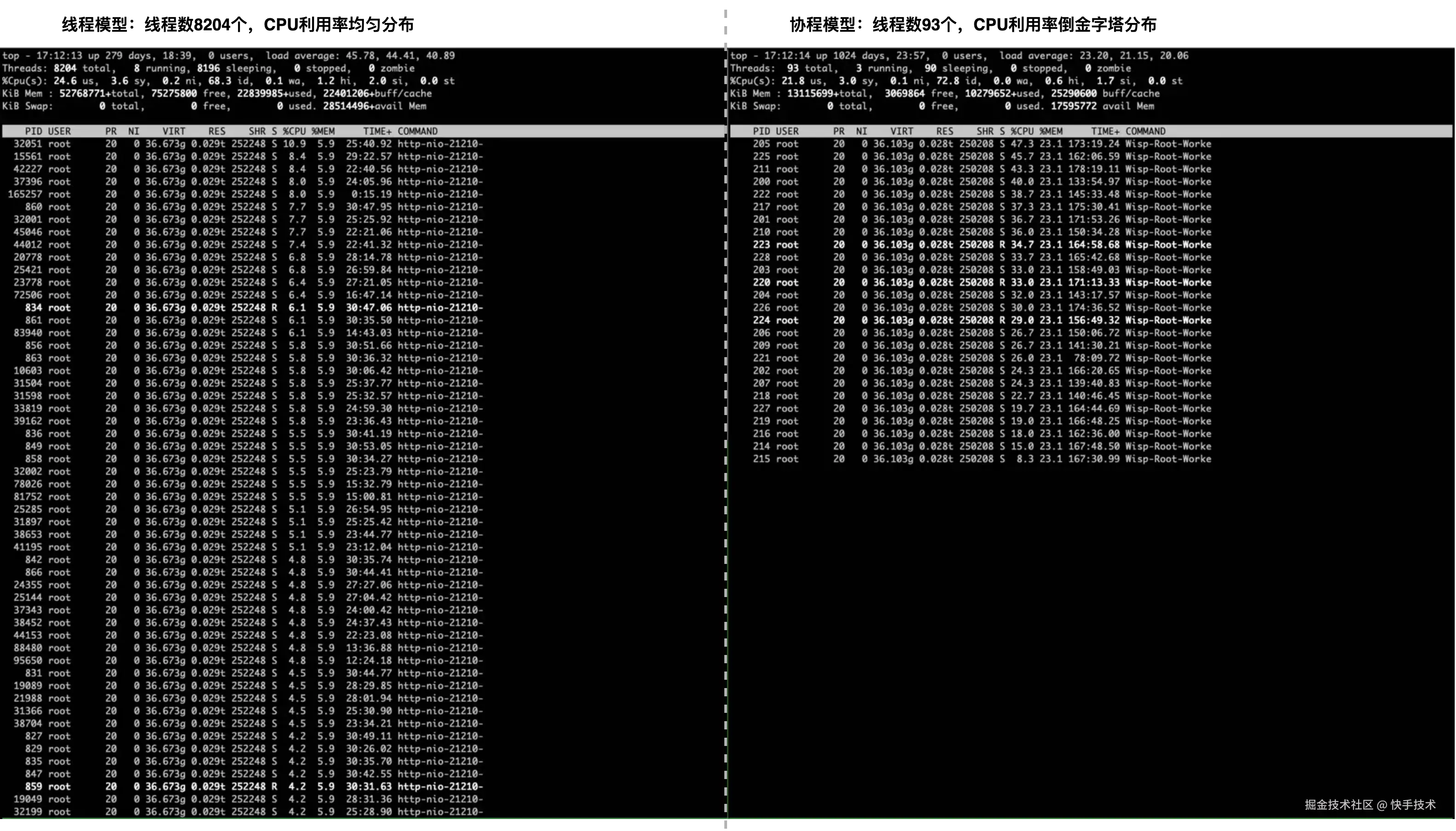 Wisp 在线上试点过程中暴露了低负载工况下 CPU 使用率偏高的问题(相比线程模型 CPU 劣化 10%+),尽管高负载时协程有显著优势,但低负载时性能表现却不尽人意。