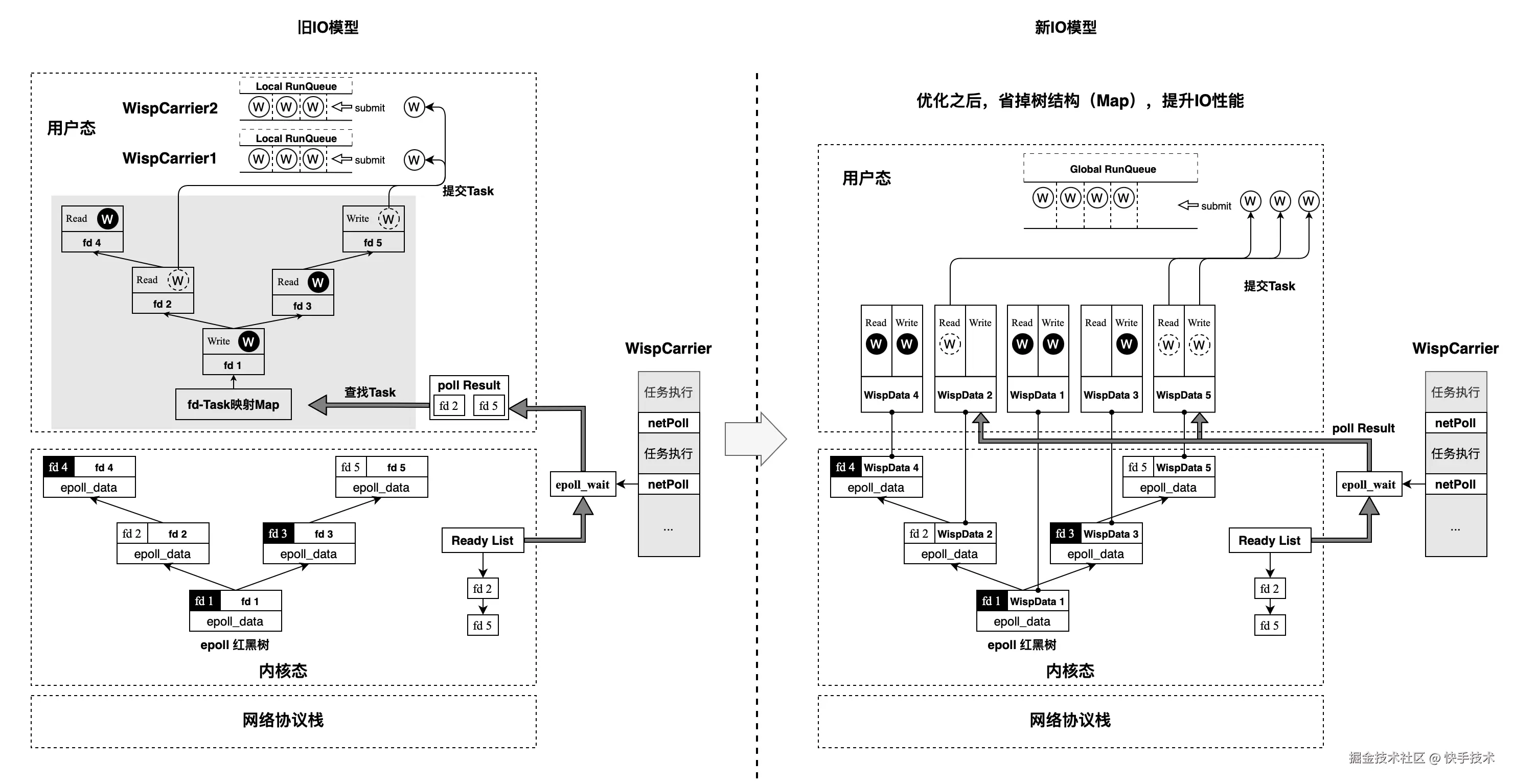 针对 Wisp IO 模型在生产环境中推广时所暴露的缺陷,我们进行了 IO 模型的重构,旨在解决以下问题: