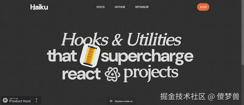 Haiku是一个轻量级的React库,包含了39个自定义Hook和7个实用工具,总大小仅为6KB。它简化了复杂逻辑,提升了开发效率,无论是状态管理、副作用处理还是性能优化,Haiku都能轻松应对。