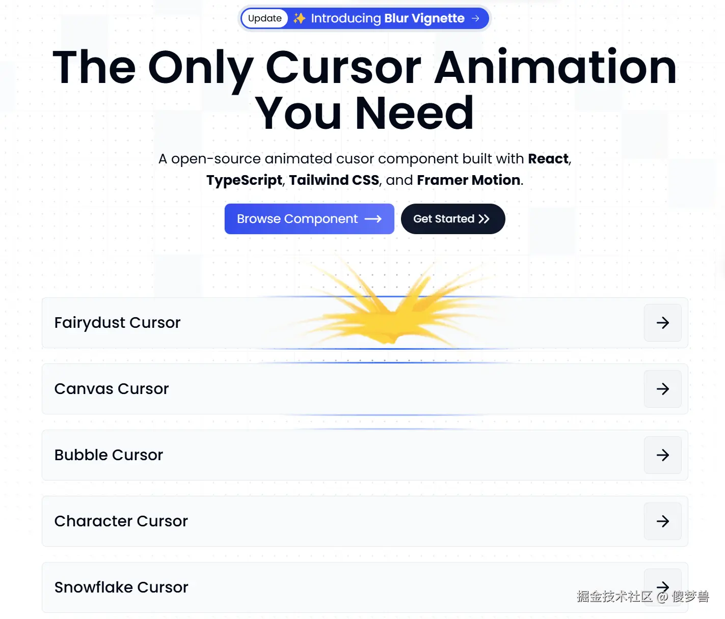 Cursify是一个开源、高度可定制的光标动画组件,能够显著提升用户交互体验。它基于React、TypeScript、Tailwind CSS和Framer Motion构建,提供了流畅、动态的动画效果,能够无缝适应用户的鼠标移动。