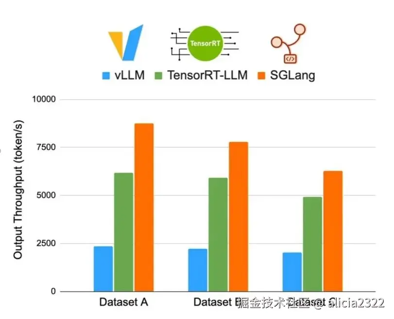 (素材来源:Achieving Faster Open-Source Llama3 Serving with SGLang Runtime (vs. TensorRT-LLM, vLLM) | LMSYS Org)