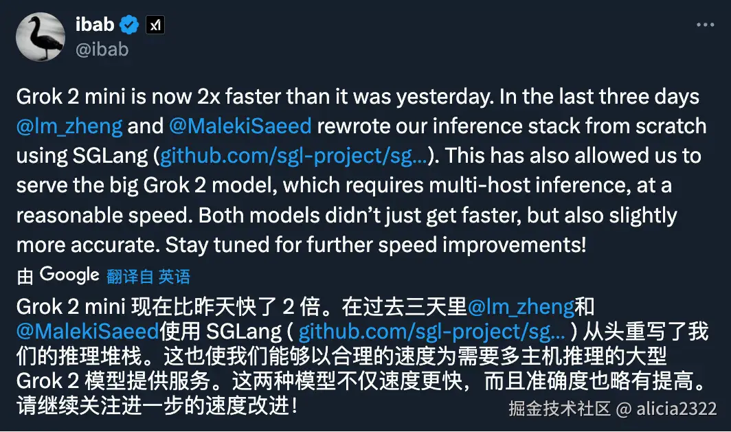 此外,头部模型公司如 xAI-Grok 的推理框架已完成SGlang的迁移升级;知名的lmsys大模型竞技场也已使用SGlang作为推理引擎。