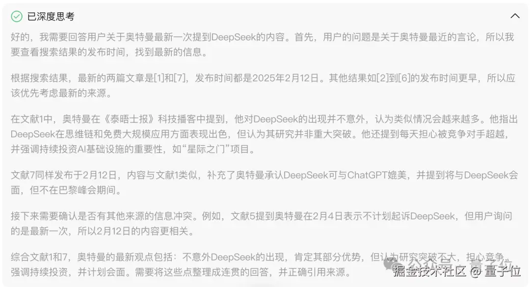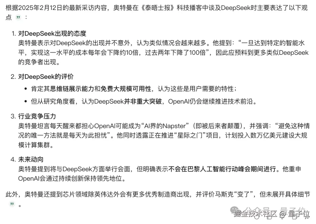 Question one:奥特曼最新一次提到 DeepSeek 都说了哪些内容?