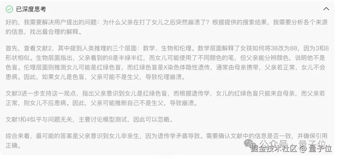 这一问其实是个海龟汤,主要考察的是元宝接入 DeepSeek-R1 后的推理能力。