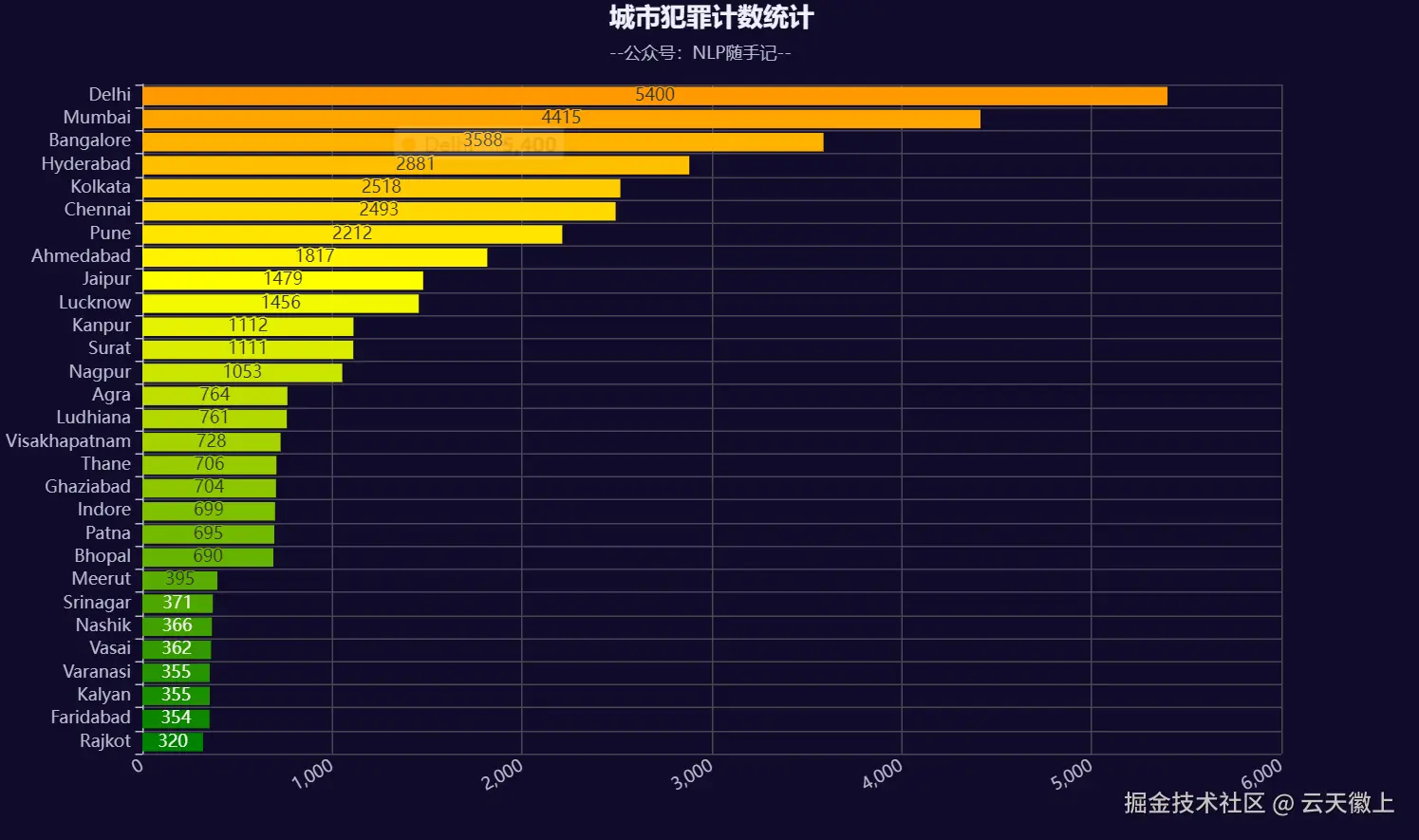 在当今社会,犯罪数据的分析对于理解犯罪模式、优化警力部署和提升公共安全具有重要意义。本文将利用 Python 的 pyecharts 库对 2020 年至 2024 年印度多个城市的犯罪数据进行可视化分析,涵盖多个关键维度。
