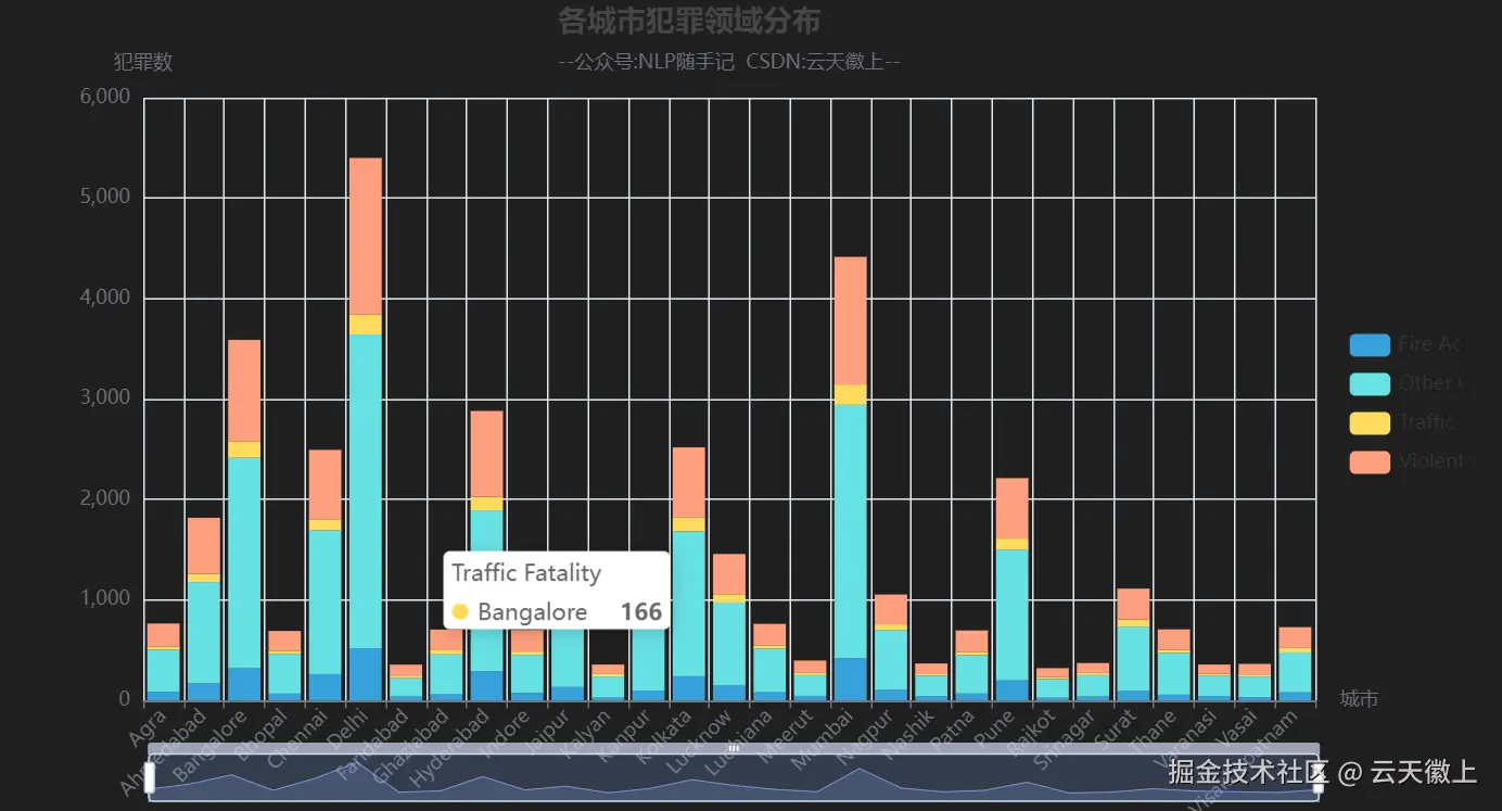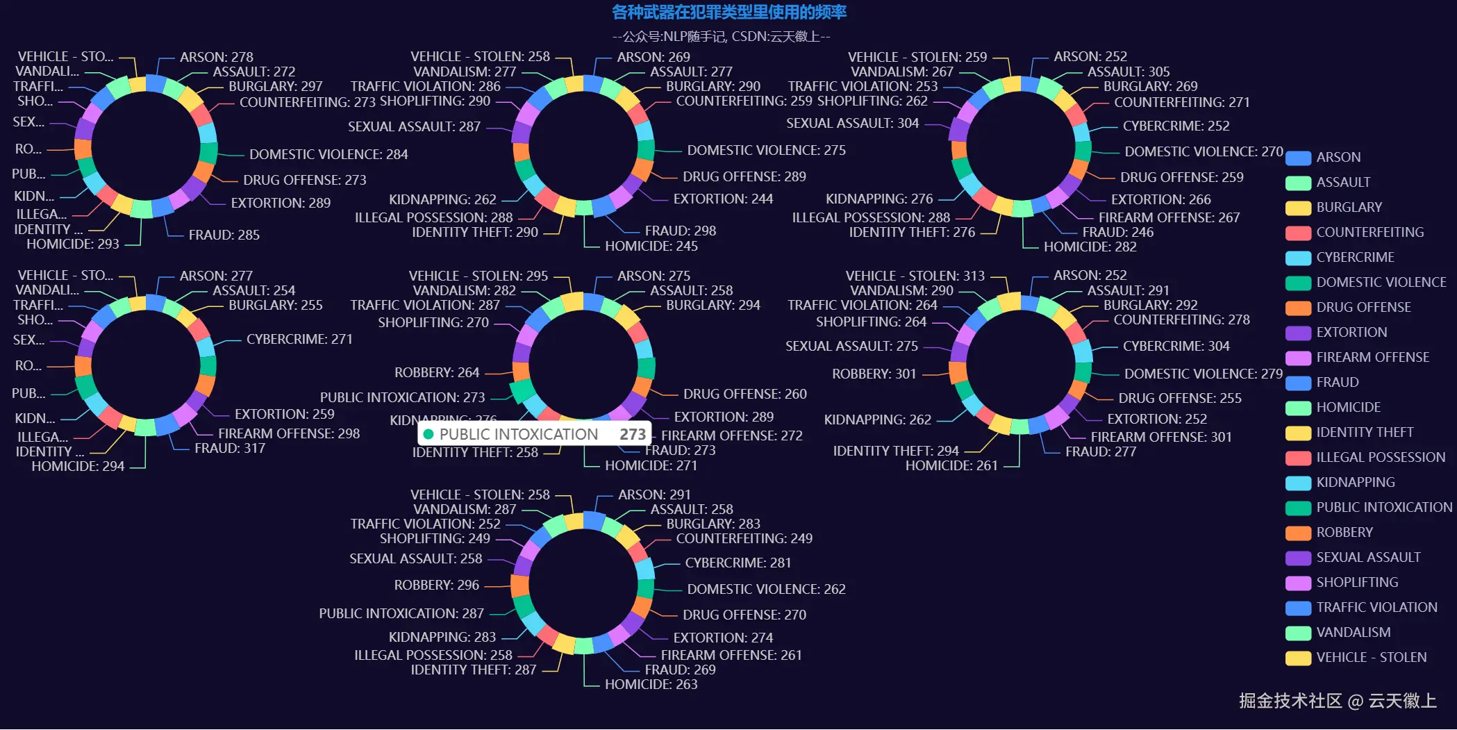 以上代码实现了对印度犯罪数据的10个关键维度的可视化分析。通过 pyecharts,我们能够直观地展示城市犯罪数量、犯罪领域、警力部署、受害者特征等多方面的信息。这些可视化图表可以帮助研究人员、政策制定者和执法机构更好地理解犯罪模式,从而制定更有效的公共安全策略。