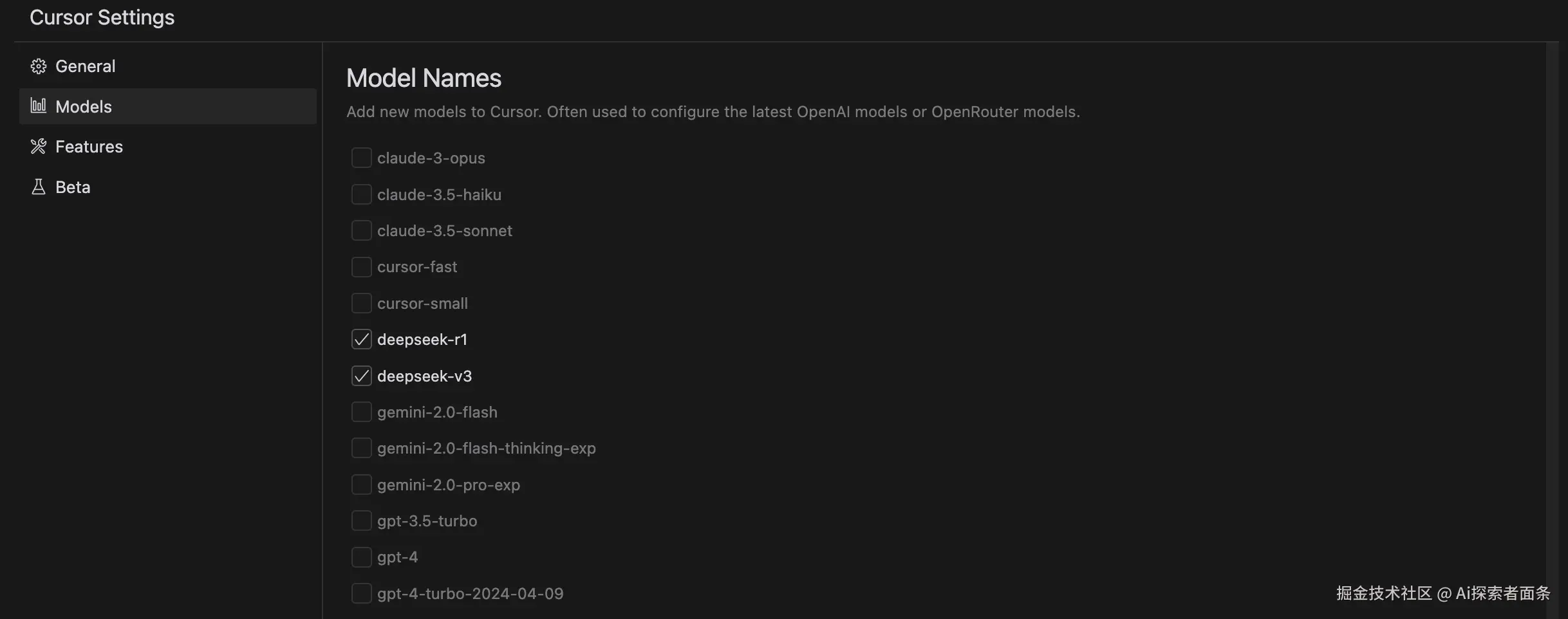 - 使用方法:作为大家的“老熟人”,Cursor 同样支持 DeepSeek 的畅玩体验。你只要在客户端简单设置一下,就能将 R1 模型设置为对话模式,轻松开启与它的互动交流。