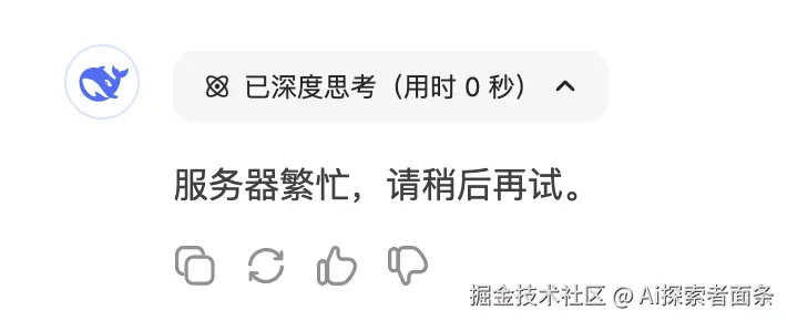 许多用户反馈,自己在使用时经常遇到这样的状况:DeepSeek 每天似乎只会好好回答第一个问题。当你接着提出新的问题,或者开启一个新的问答会话时,屏幕上就会无情地弹出提示——“服务器繁忙,请稍后再试”。想象一下,正当你思维活跃、问题不断,满心期待地等待着它的精彩回应时,却被这样冰冷冷的提示挡在门外,任谁都会瞬间觉得烦躁不已,血压“蹭蹭”往上涨。