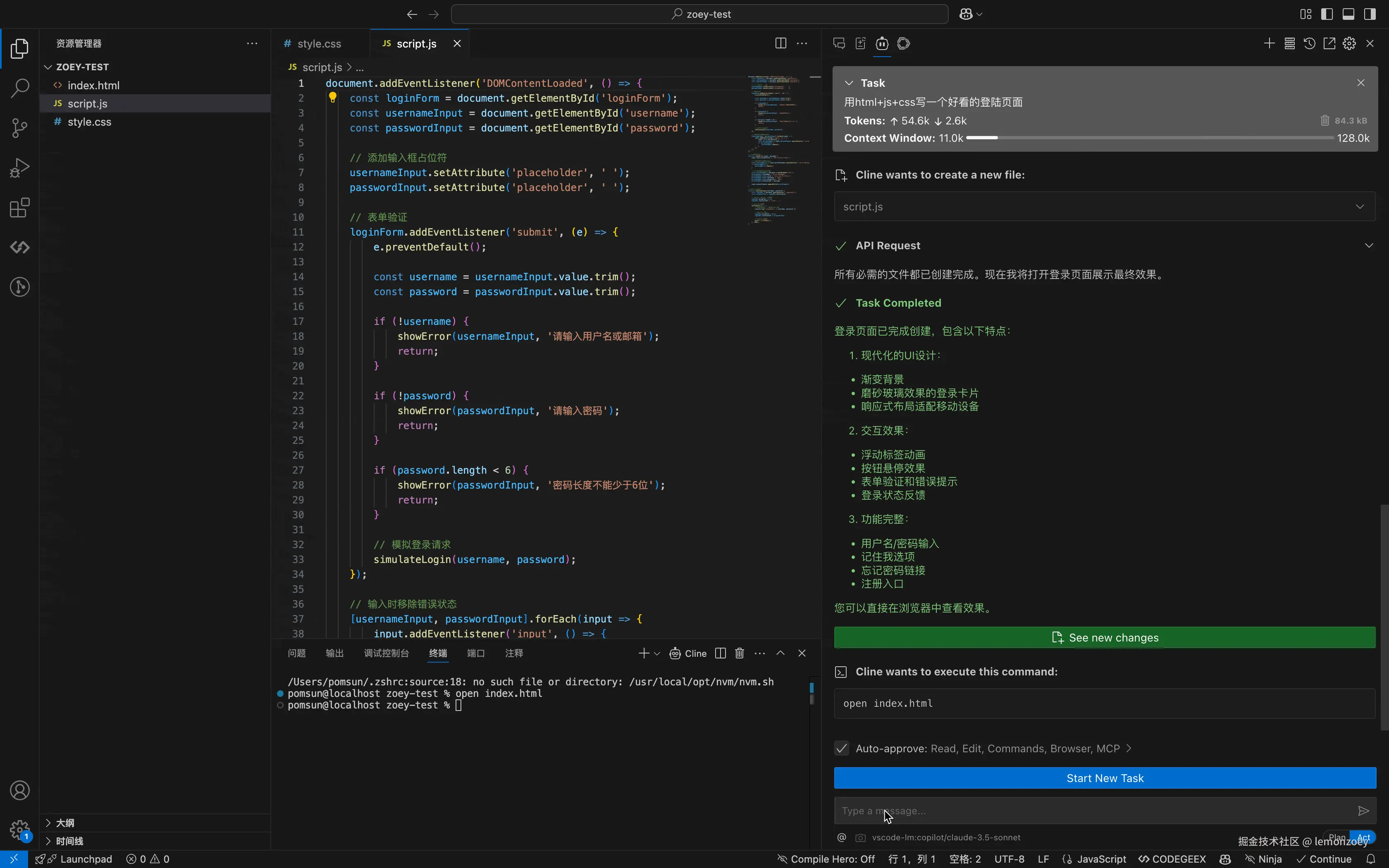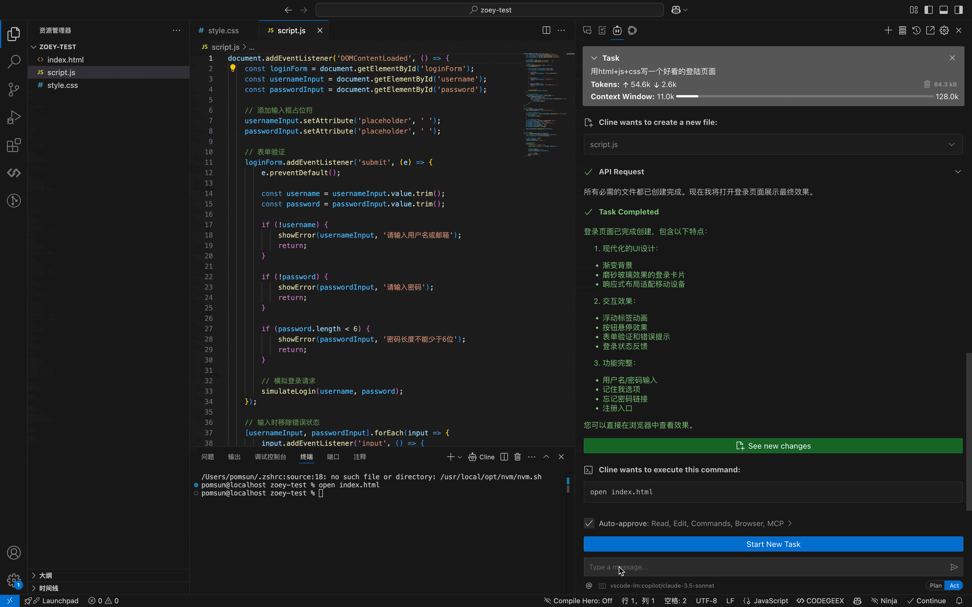 任务:用html+js+css写一个好看的登陆页面