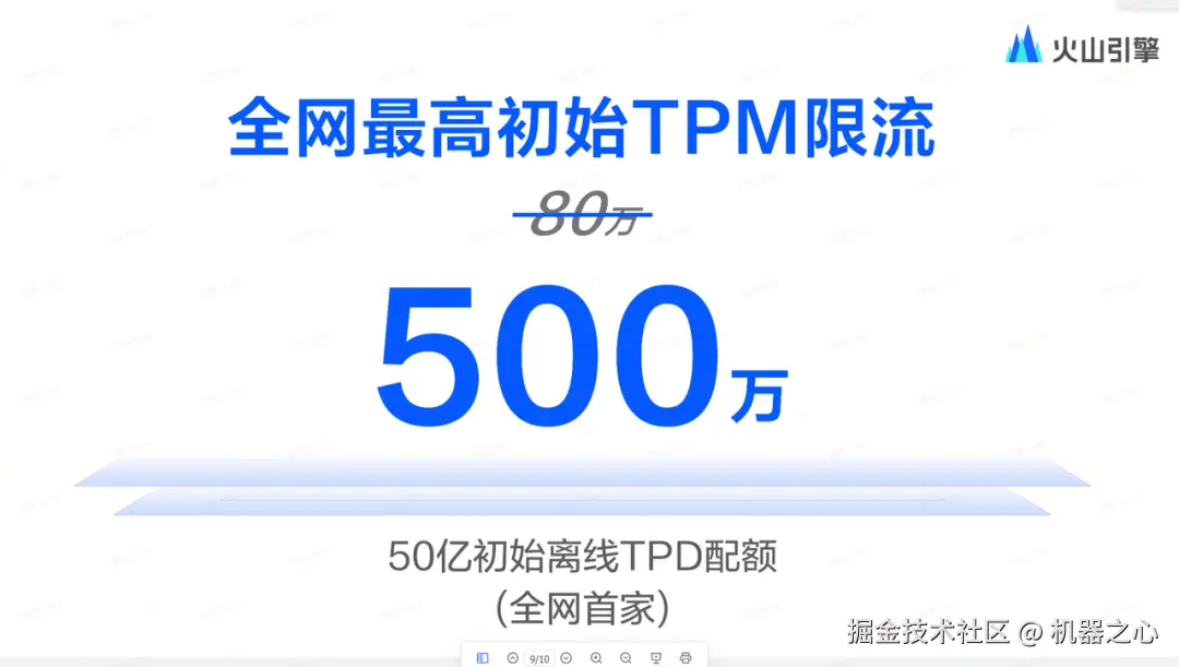 事实上,DeepSeek 系列模型现有的数万客户对火山引擎来说也只能是「洒洒水啦」。要知道,火山引擎为每位用户设定的初始 TPM(每分钟 Token 数)限流就已经达到了惊人的 500 万!在之前 80 万 TPM 的基础上实现了近一个数量级的提升。可说是全网最高。企业和开发者完全不必担心自己的数据或查询量过大和流量不够。