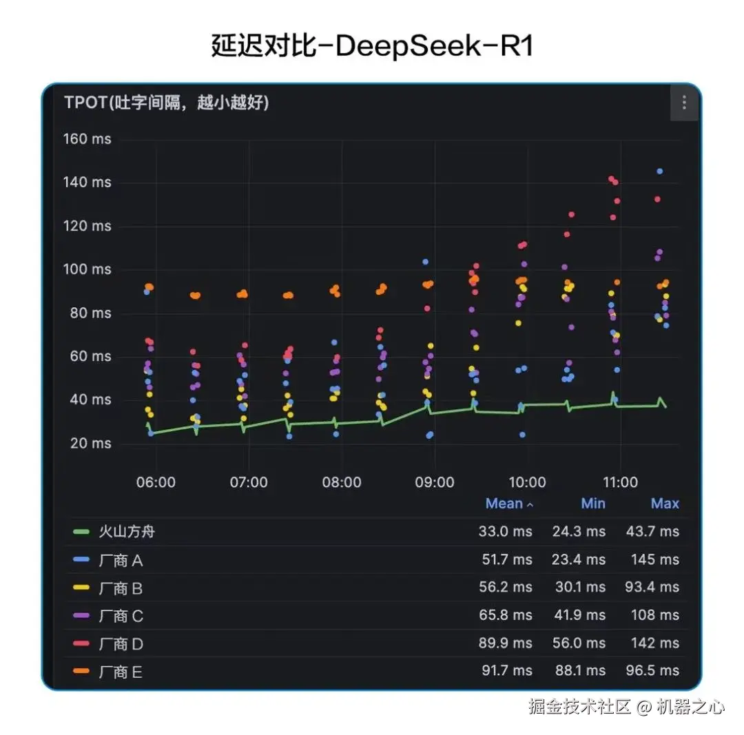 为了让 DeepSeek-R1 和其它 AI 模型更快、更准确地与用户交互,火山引擎还在继续不断完善推理层性能,现已将 TPOT(输出每个 Token 的时间)降低到接近 30ms。并且优化还将继续,据了解,火山引擎还计划将 TPOT 进一步稳定地压低至 15ms~30ms 区间,成为国内最低延迟的大规模 DeepSeek-R1 推理服务,助力用户获得畅享流畅的交互体验。