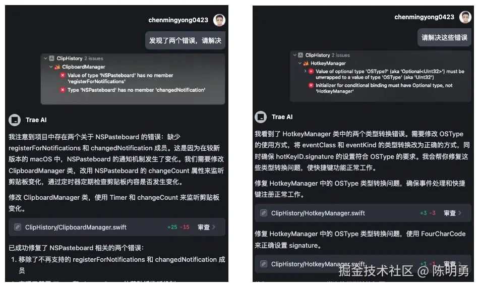 于是我在想,我对 Switft 一无所知,是否能通过 AI IDE,零代码开发一个满足自己需求的 Mac 剪贴板管理工具呢?最终我选择尝试使用 Trae 来实现这个目标。结果真是出乎我的意料,作为一个完全的 Swift 零基础小白,我竟然能够通过零代码轻松开发出一款实用的 Mac 应用。