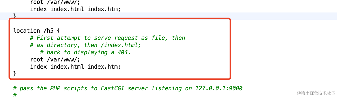 然后需要配置nginx:注意root配置为/var/www/就可以了,不要加h5