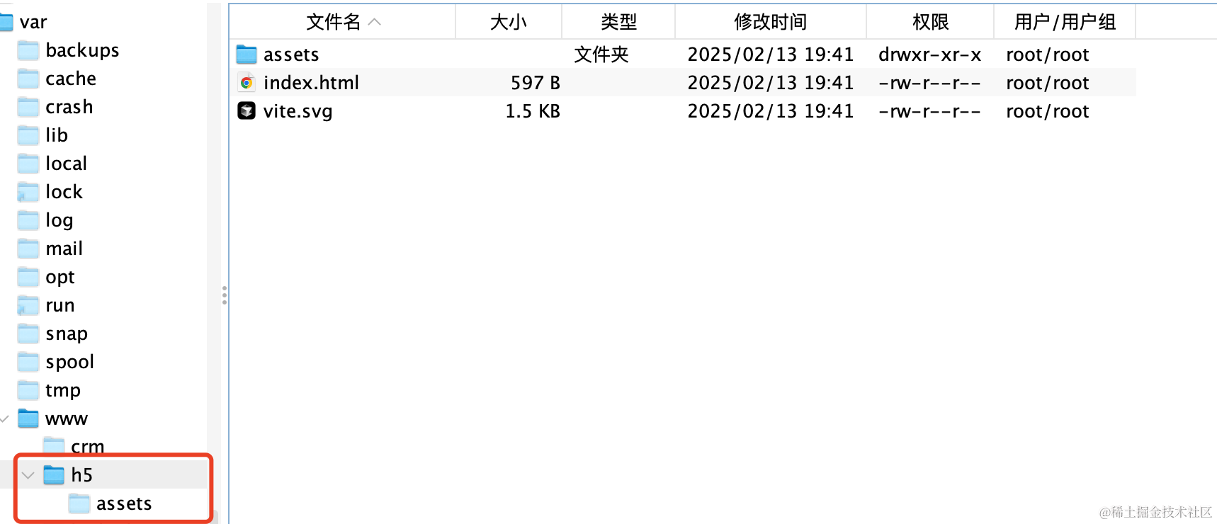 root /var/www/;:指定根目录为 /var/www/,因此 /h5 对应的物理路径是 /var/www/h5。