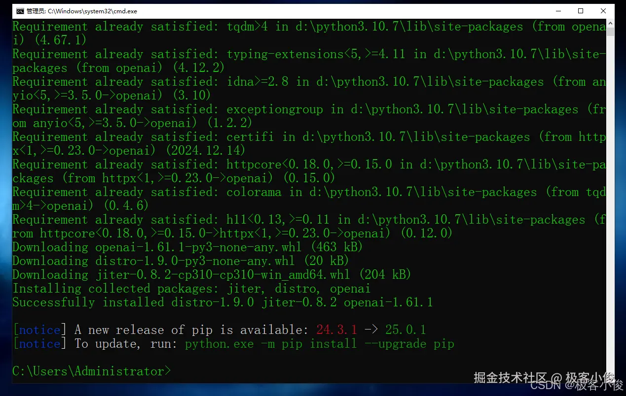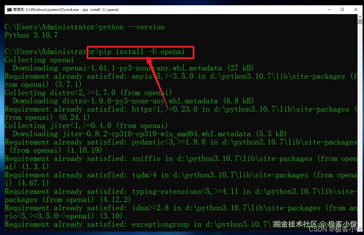 然后开始安装或更新OpenAI,执行以下命令!