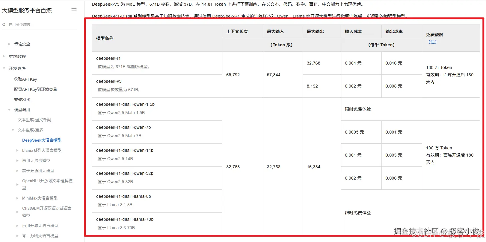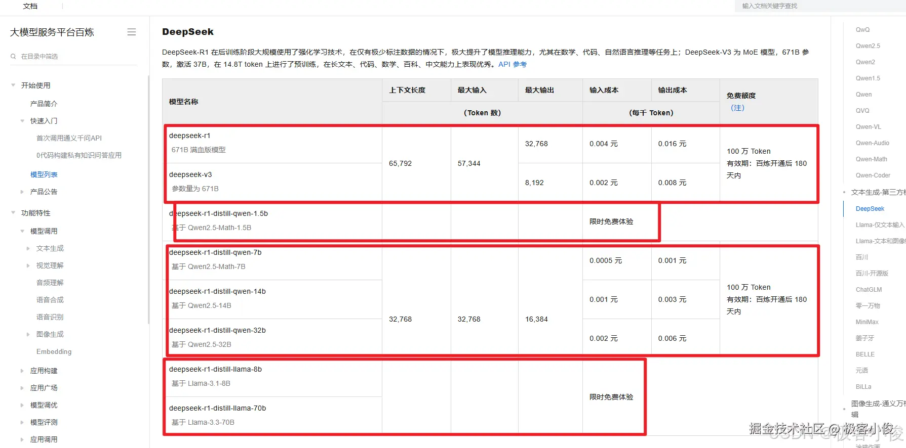 同时阿里云百炼平台提供了DeepSeek系列的免费服务。