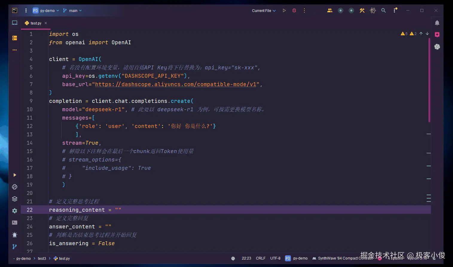 那么这就简单的实现了在本地PyCharm开发环境中,通过编程接口API对部署于云端服务的阿里云百炼平台的DeepSeek-R1大模型的远程程序化访问与调用!